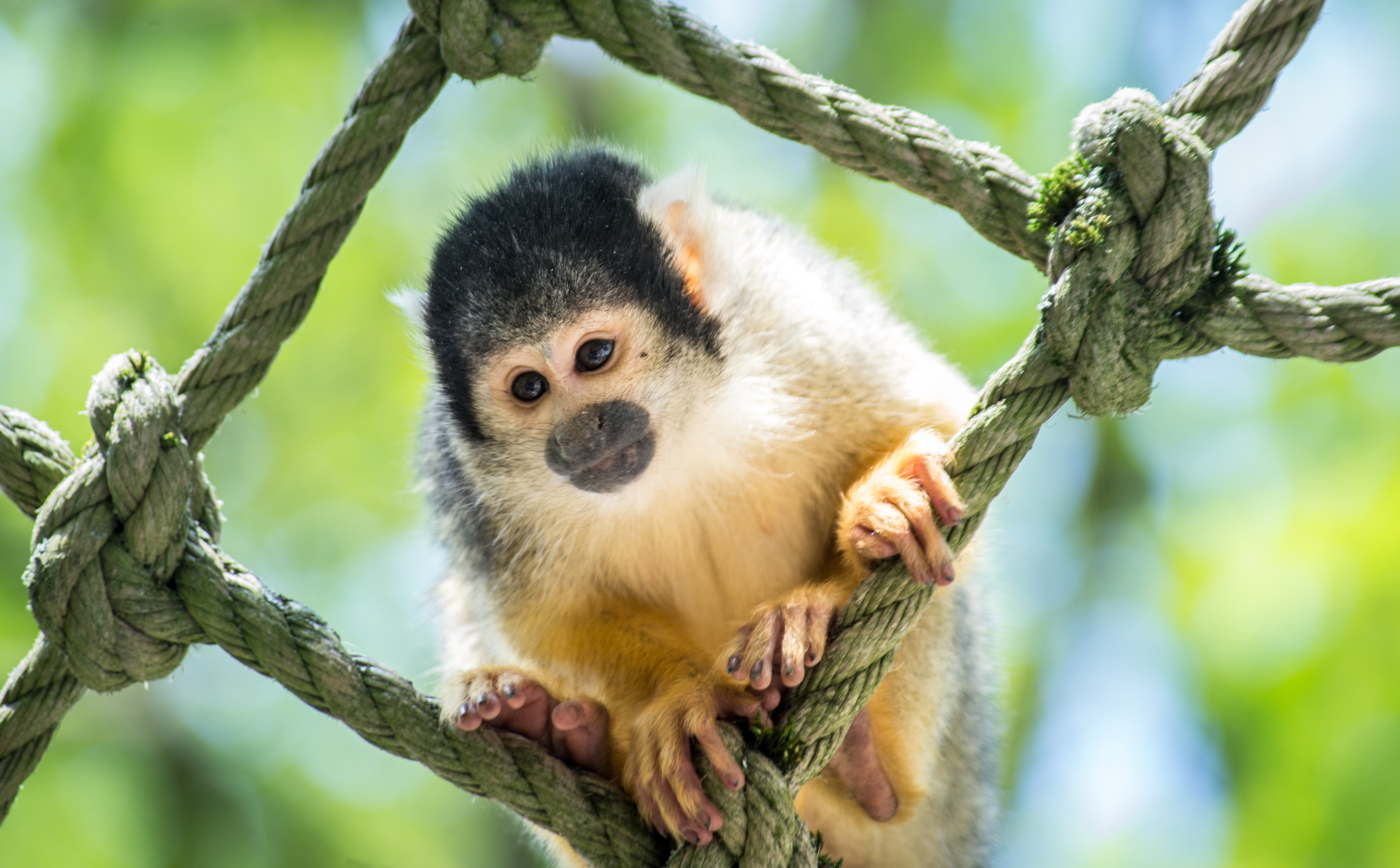 Обезьяна капуцин сидит на сетке - 5655x3504