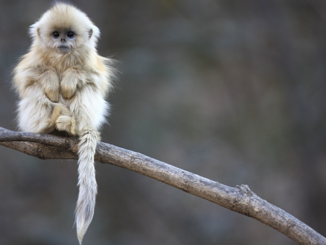 Маленькая обезьянка сидит на ветке - 2560x1600