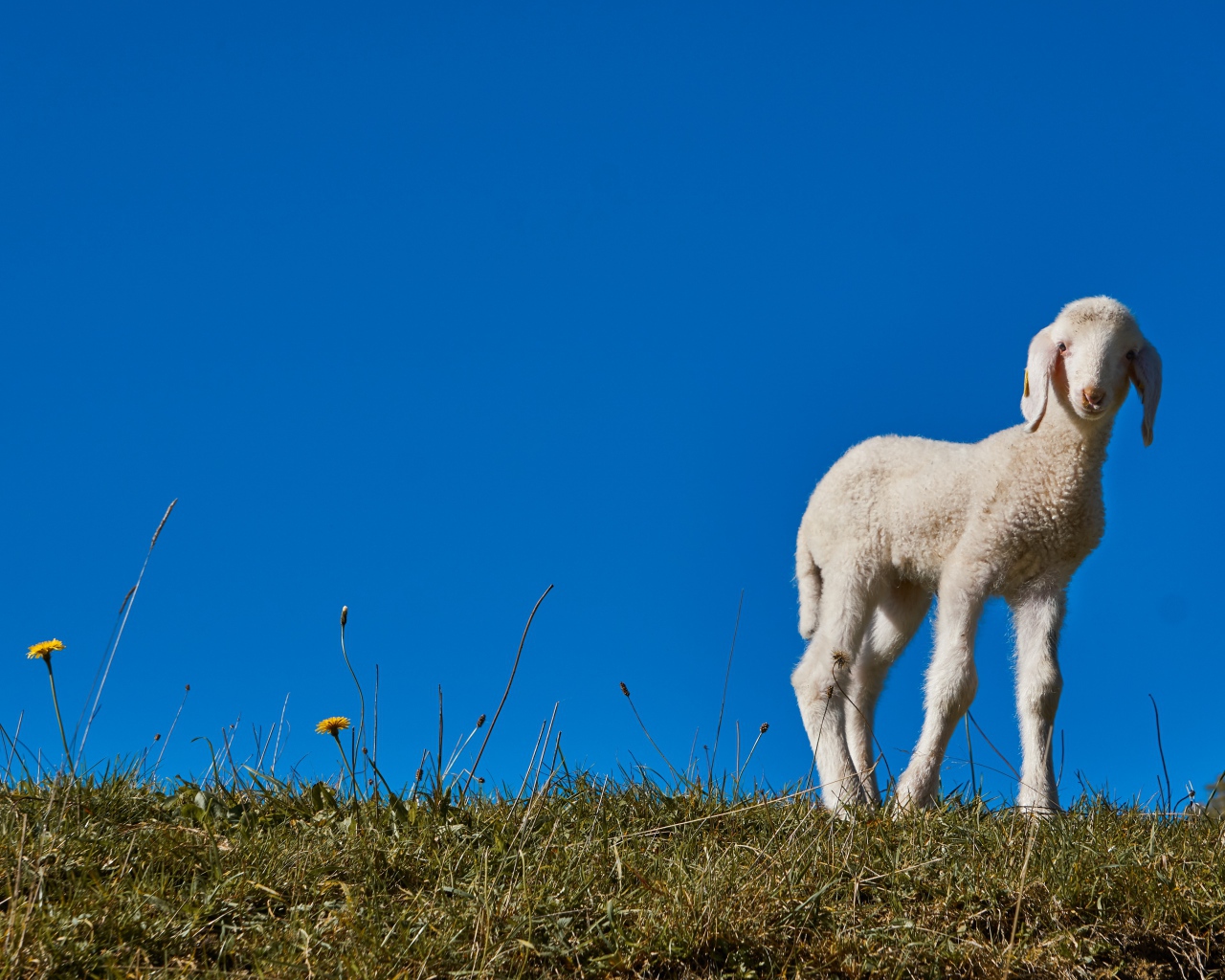 Маленький белый ягненок на фоне голубого неба Обои для рабочего стола 1280x1024