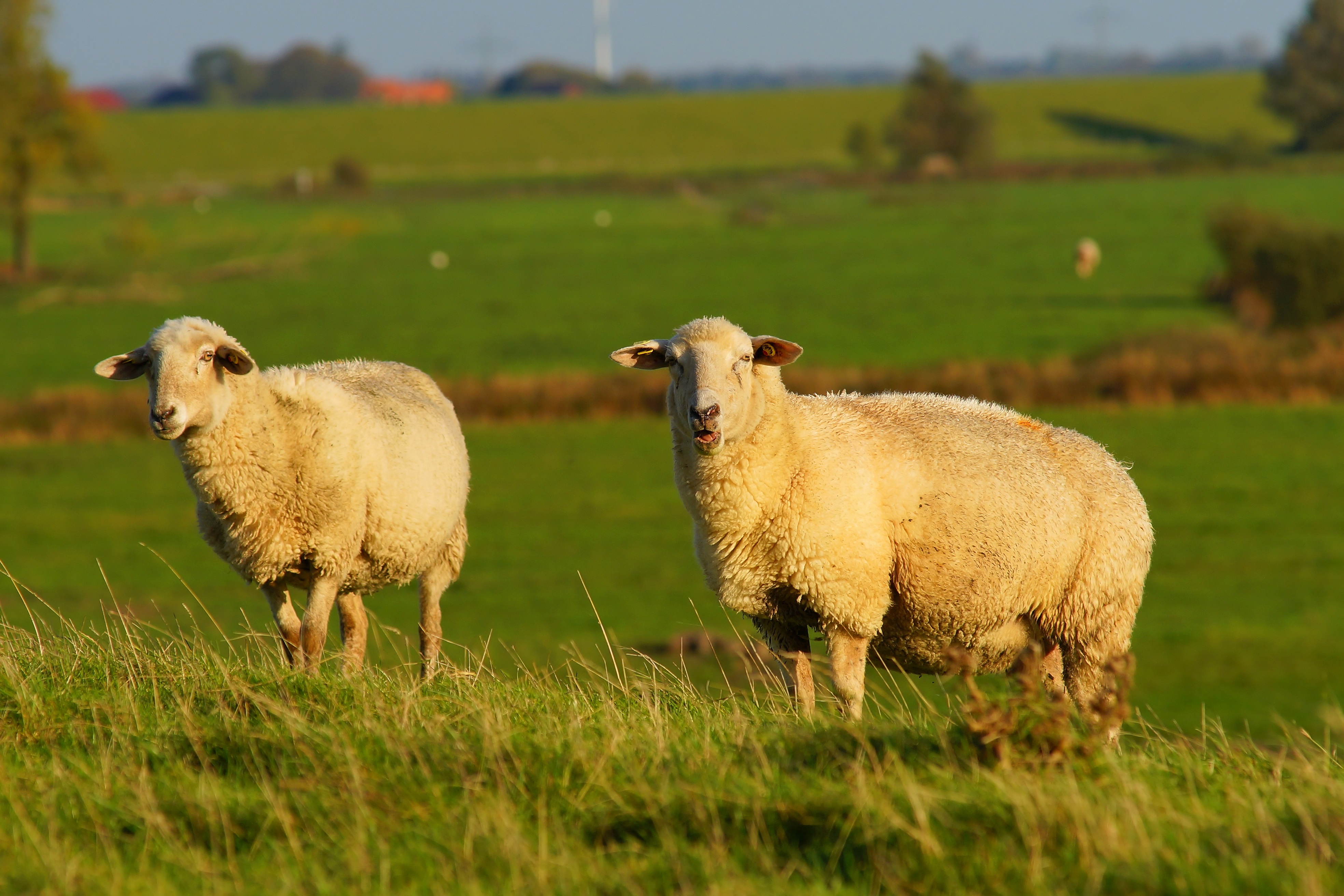 Две большие пушистые овцы на зеленой траве - 3936x2624