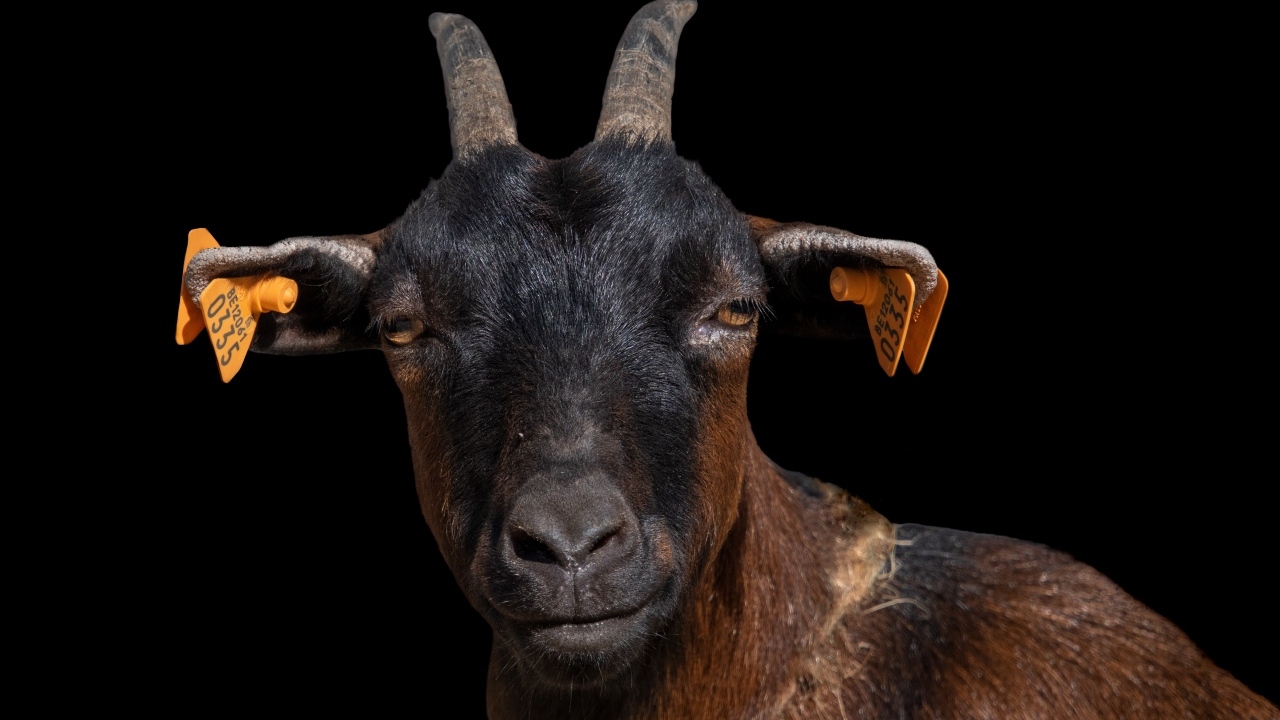 Черная коза с острыми рогами Обои для рабочего стола 1280x720