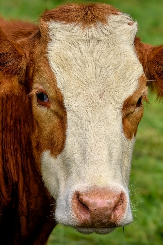 Большая коричневая корова с белой мордой Обои для рабочего стола 640x960
