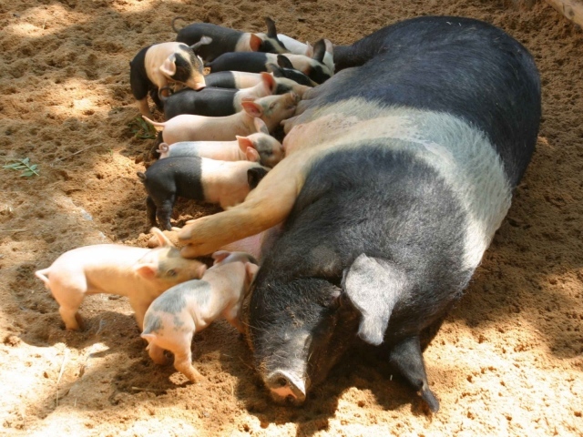Обои: Свинья с поросятами