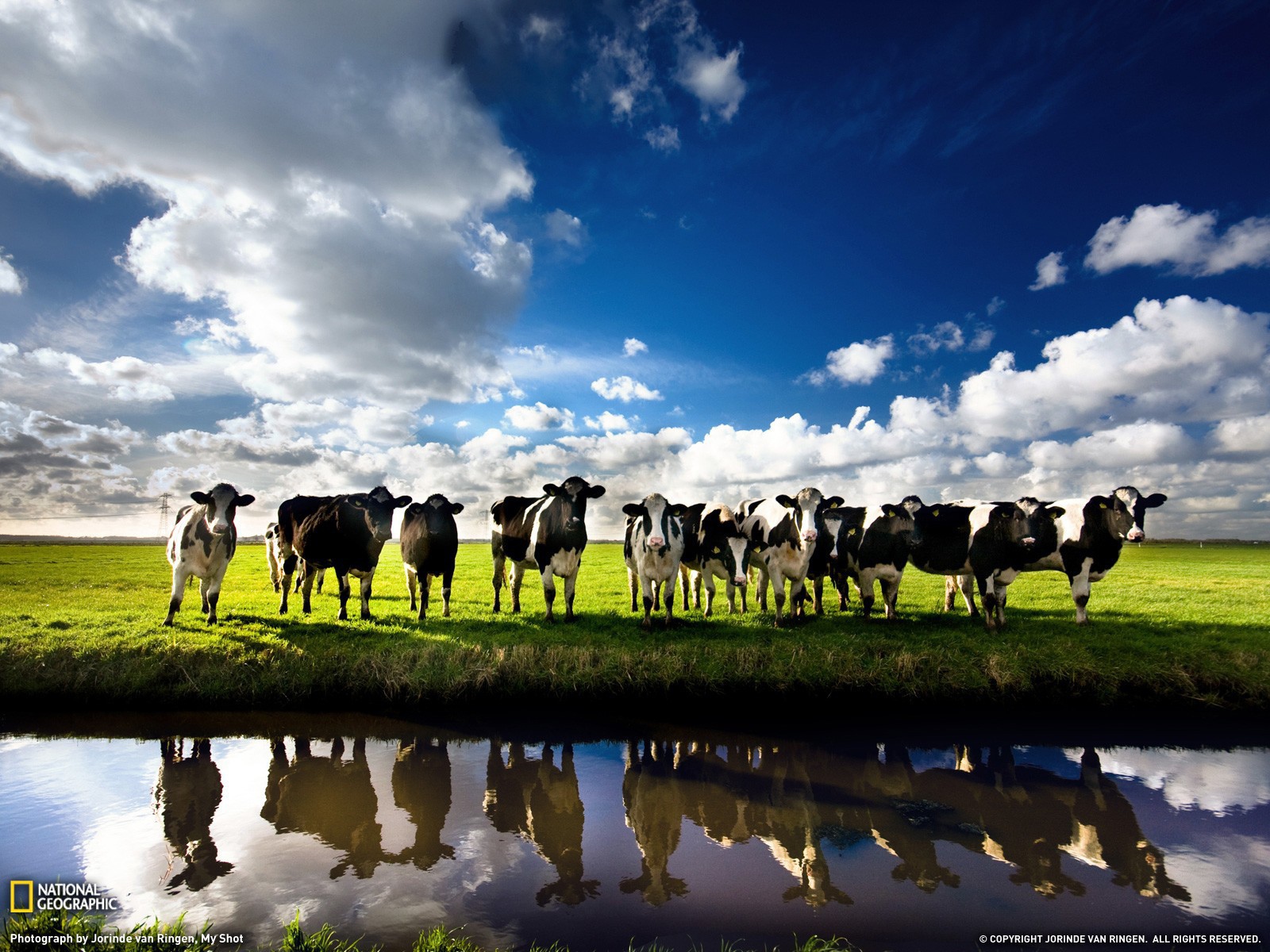 Коровы на берегу реки Обои для рабочего стола 1600x1200