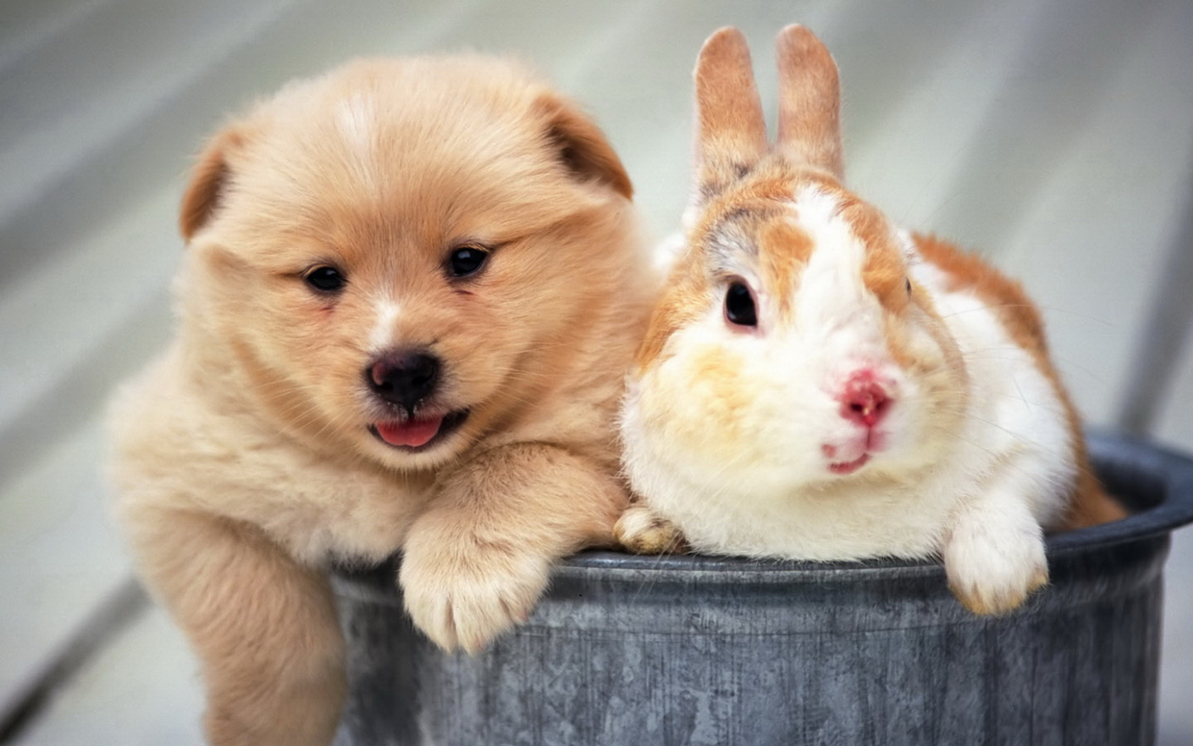 Щенок и кролик Обои для рабочего стола 1680x1050