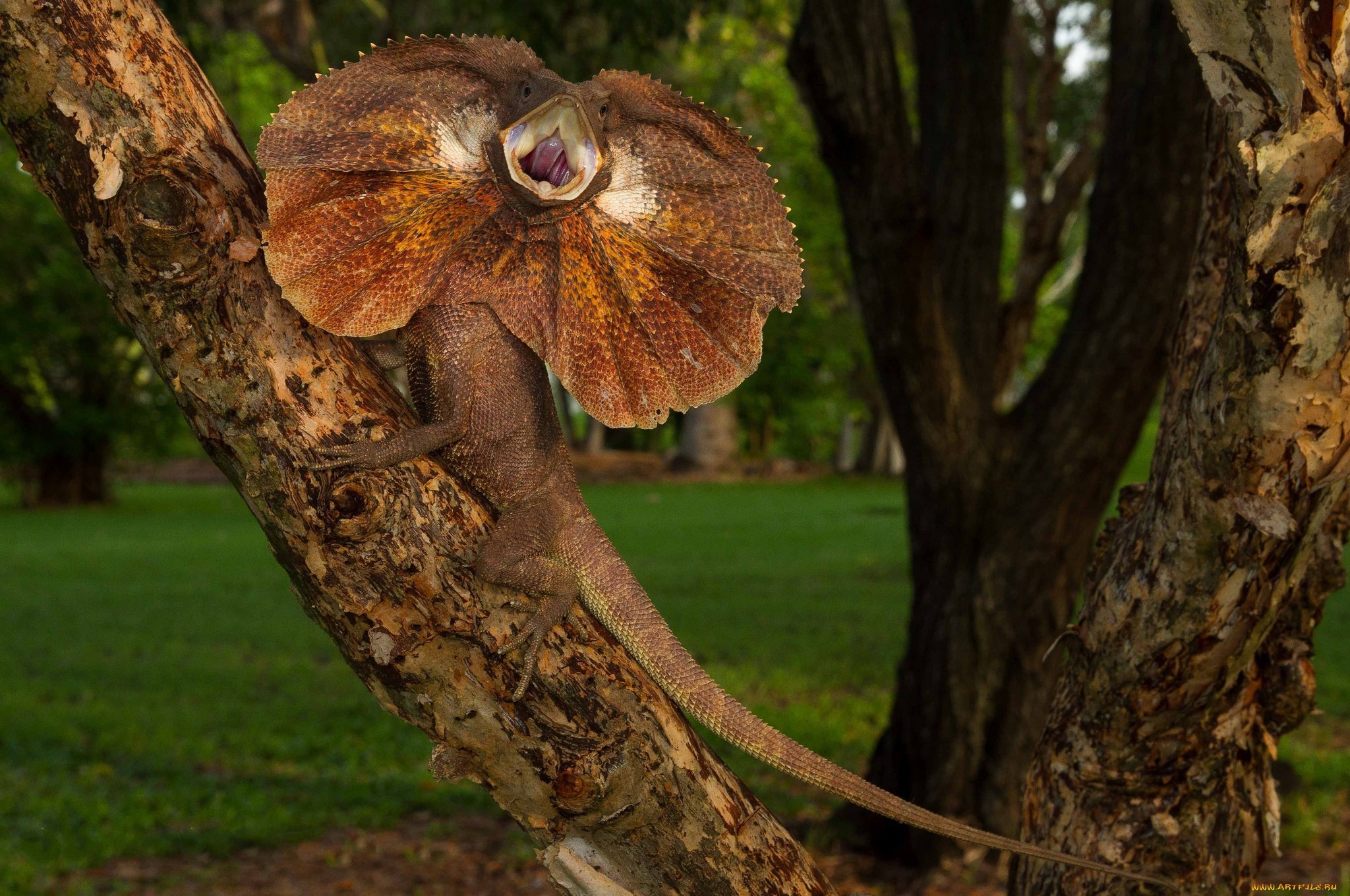 Ящерица с воротником на дереве - 2048x1360
