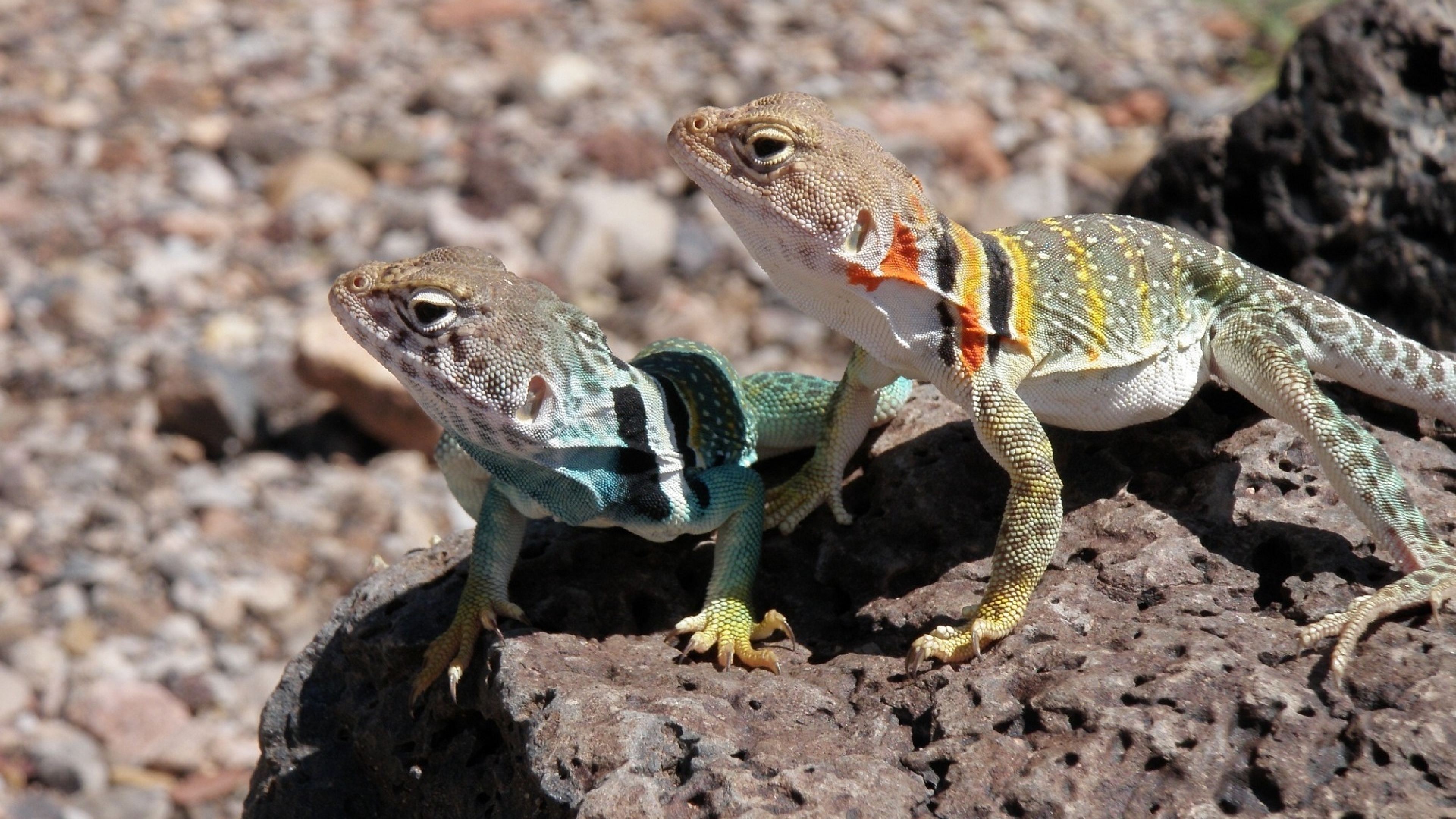Две ошейниковые пустынные игуаны на камне - 3840x2160