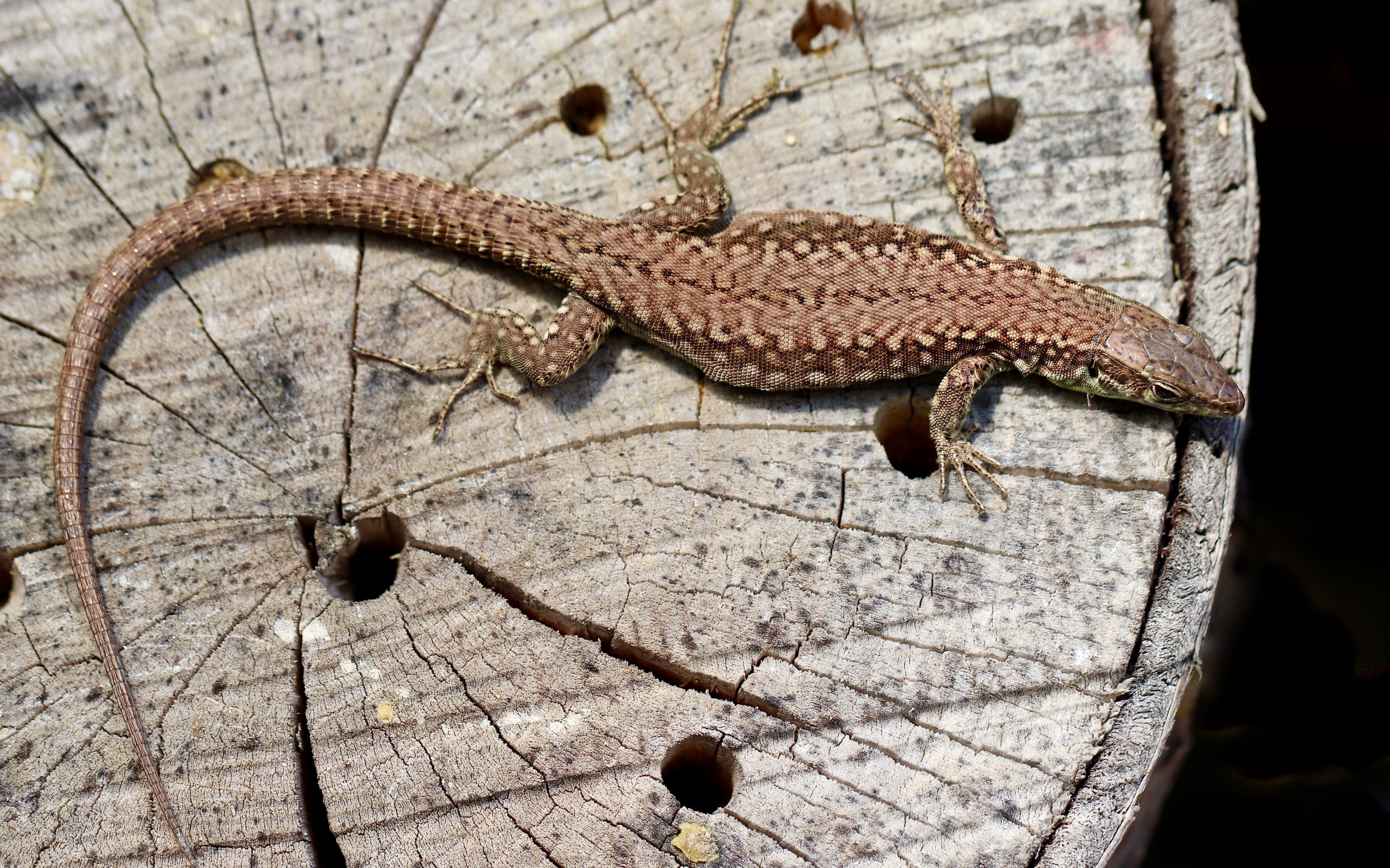 Красивая ящерица на старом пне Обои для рабочего стола 2560x1600