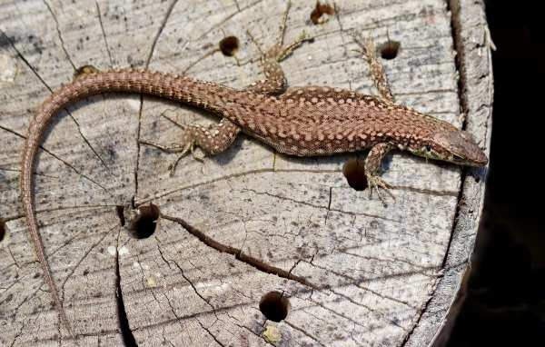 Красивая ящерица на старом пне Обои для рабочего стола 600x382