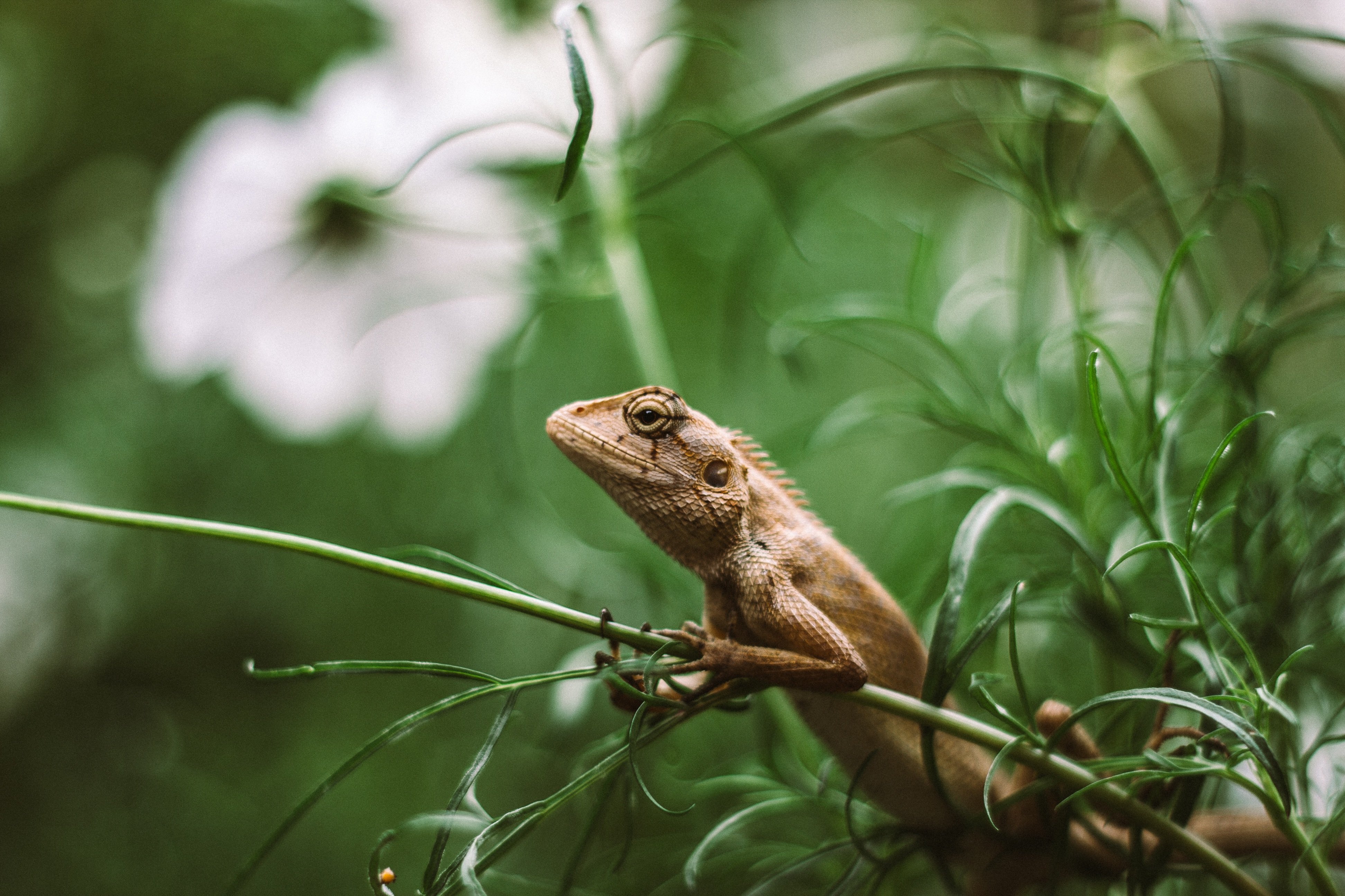 Маленькая ящерица сидит в зеленой траве - 3888x2592