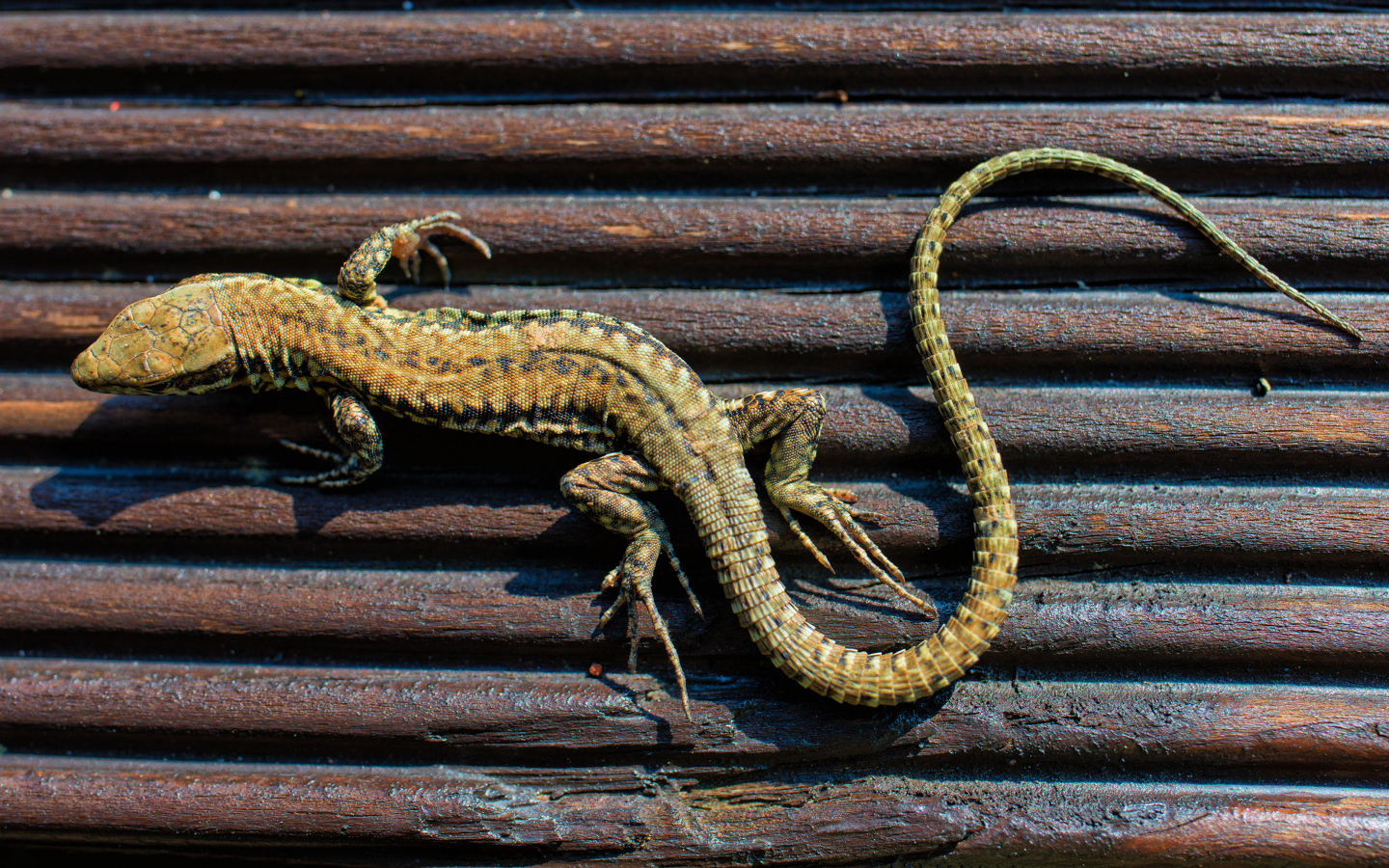 Большая ящерица на деревянной лавке Обои для рабочего стола 1440x900