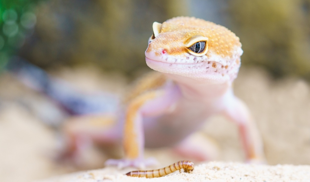 Рыжий геккон обедает Обои для рабочего стола 1024x600