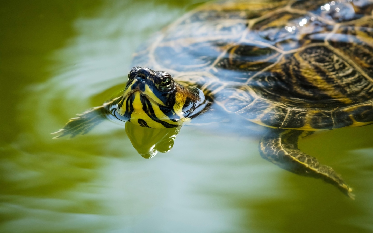Большая черепаха плавает в воде Обои для рабочего стола 1440x900