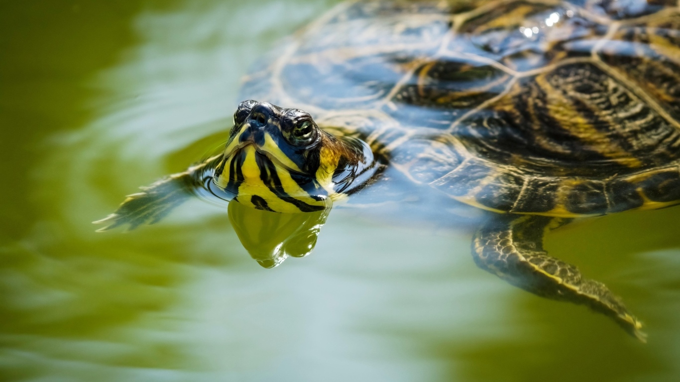 Большая черепаха плавает в воде Обои для рабочего стола 1366x768