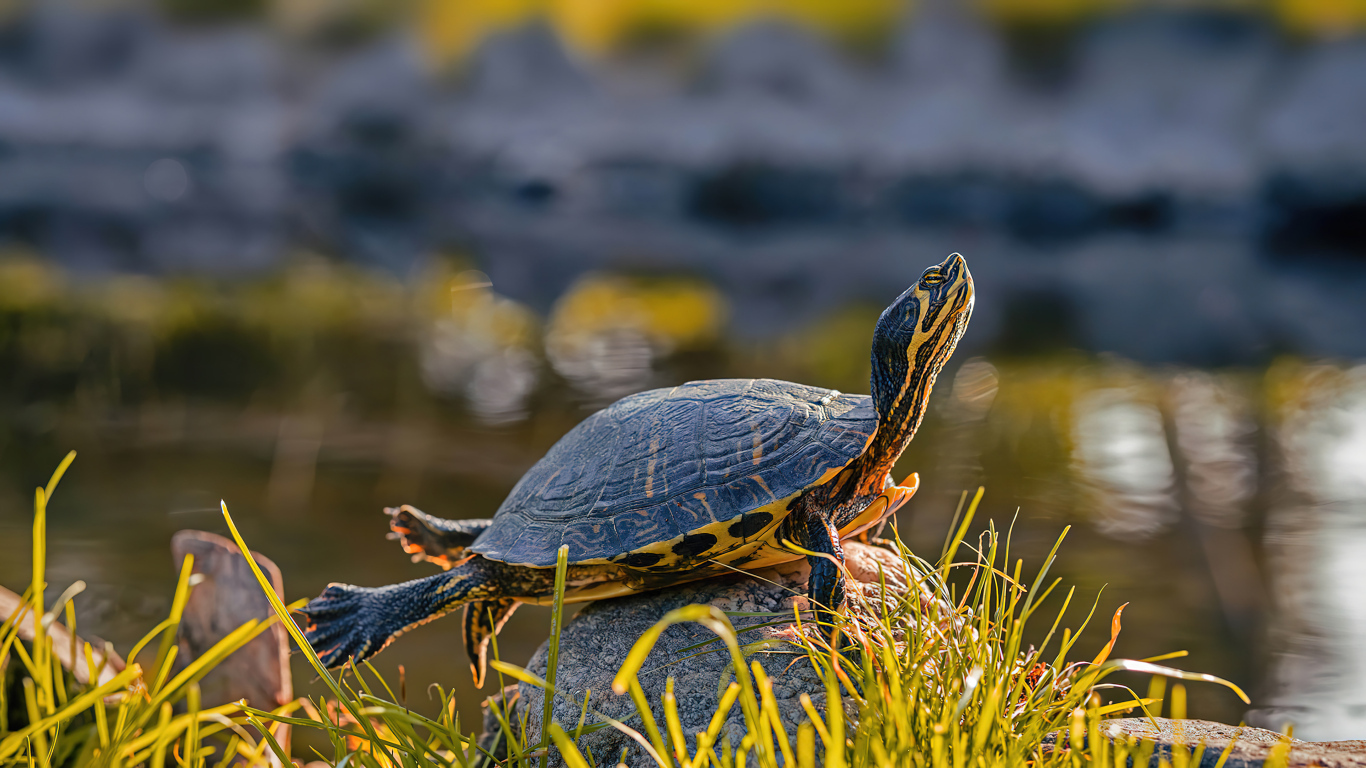 Черепаха греется на камне Обои для рабочего стола 1366x768
