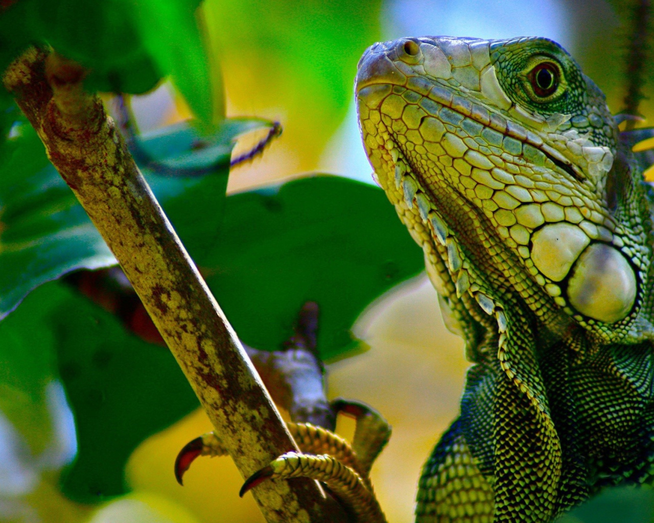 Зеленая ящерица на ветке Обои для рабочего стола 1280x1024