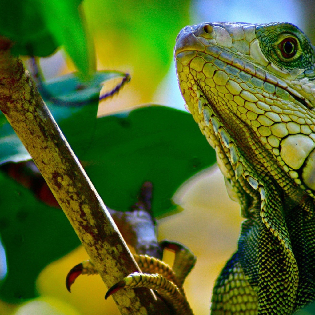 Зеленая ящерица на ветке Обои для рабочего стола 1024x1024