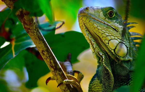 Зеленая ящерица на ветке Обои для рабочего стола 600x382