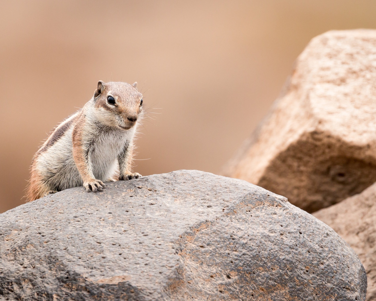 Маленький забавный бурундук сидит на камне Обои для рабочего стола 1280x1024