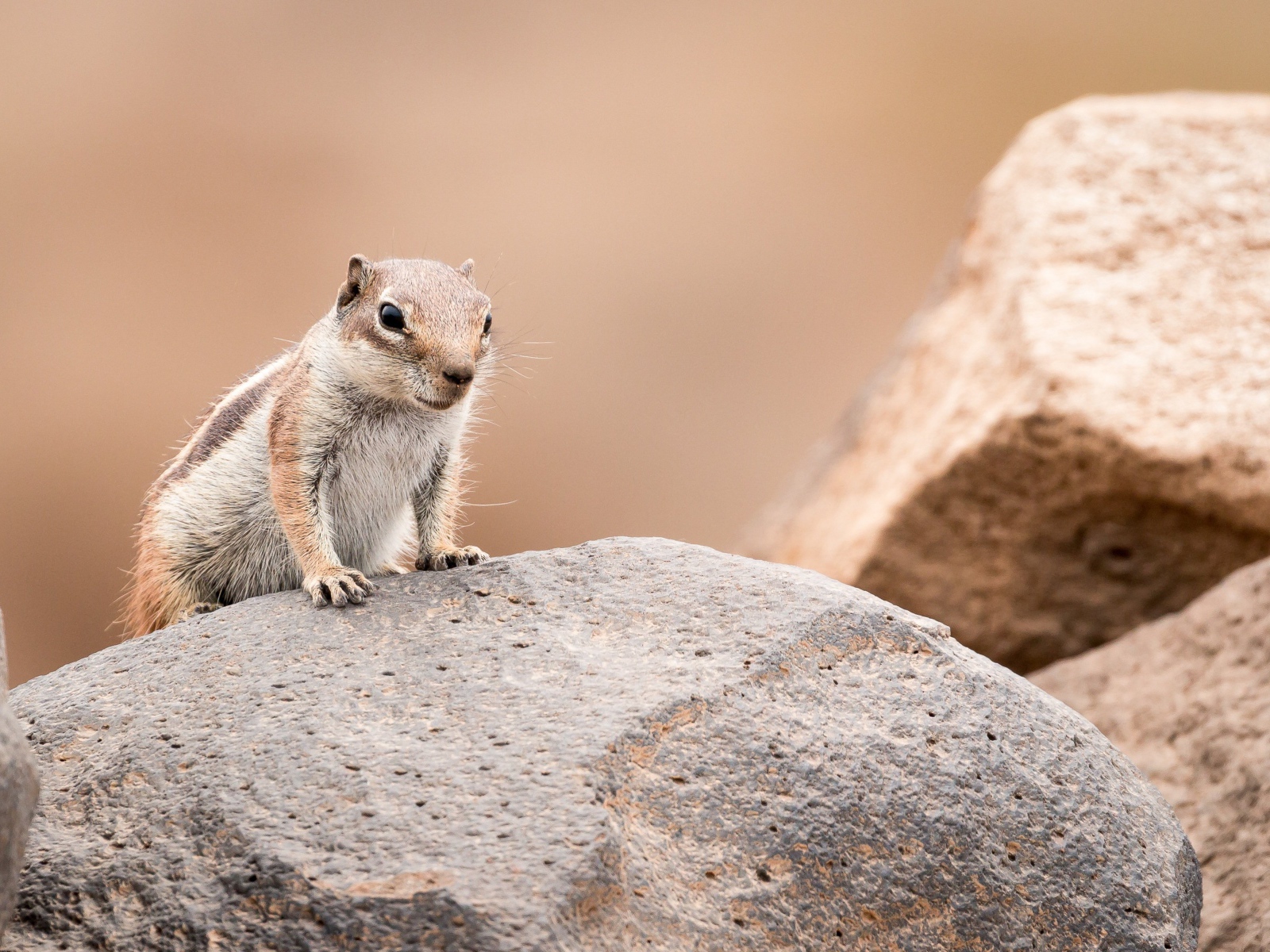 Маленький забавный бурундук сидит на камне - 3598x2399
