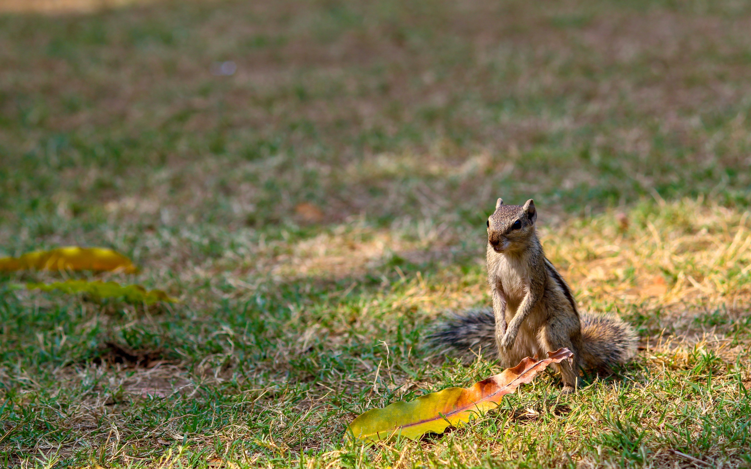 Бурундук сидит на зеленой траве Обои для рабочего стола 2560x1600