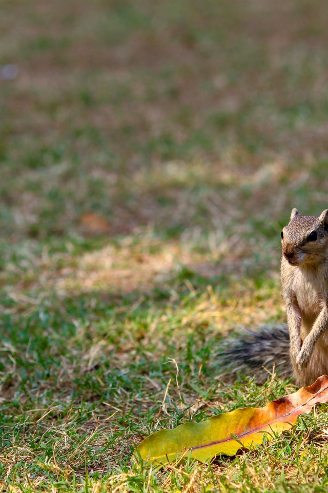 Бурундук сидит на зеленой траве Обои для рабочего стола 640x960