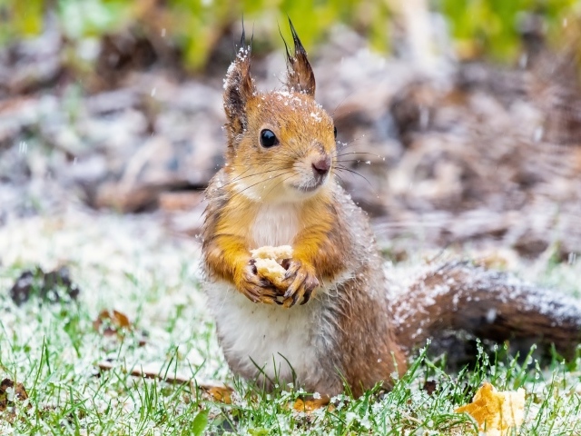 Маленькая белка на покрытой снегом траве - 3840x2160