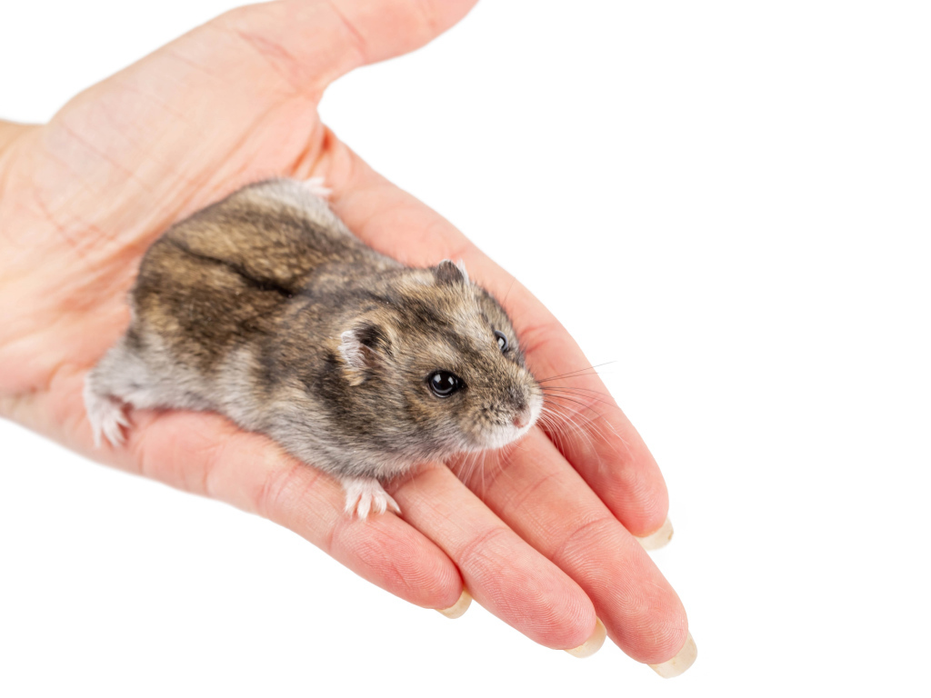 Маленький хомяк джунгарик на ладони - 2700x1800