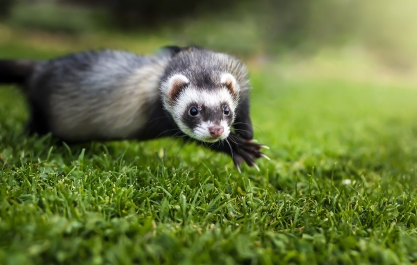 Смешной хорек на зеленой траве Обои для рабочего стола 600x382