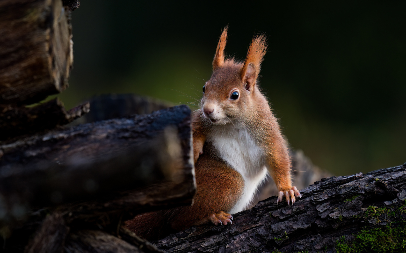 Удивленная белка сидит на дереве Обои для рабочего стола 1680x1050