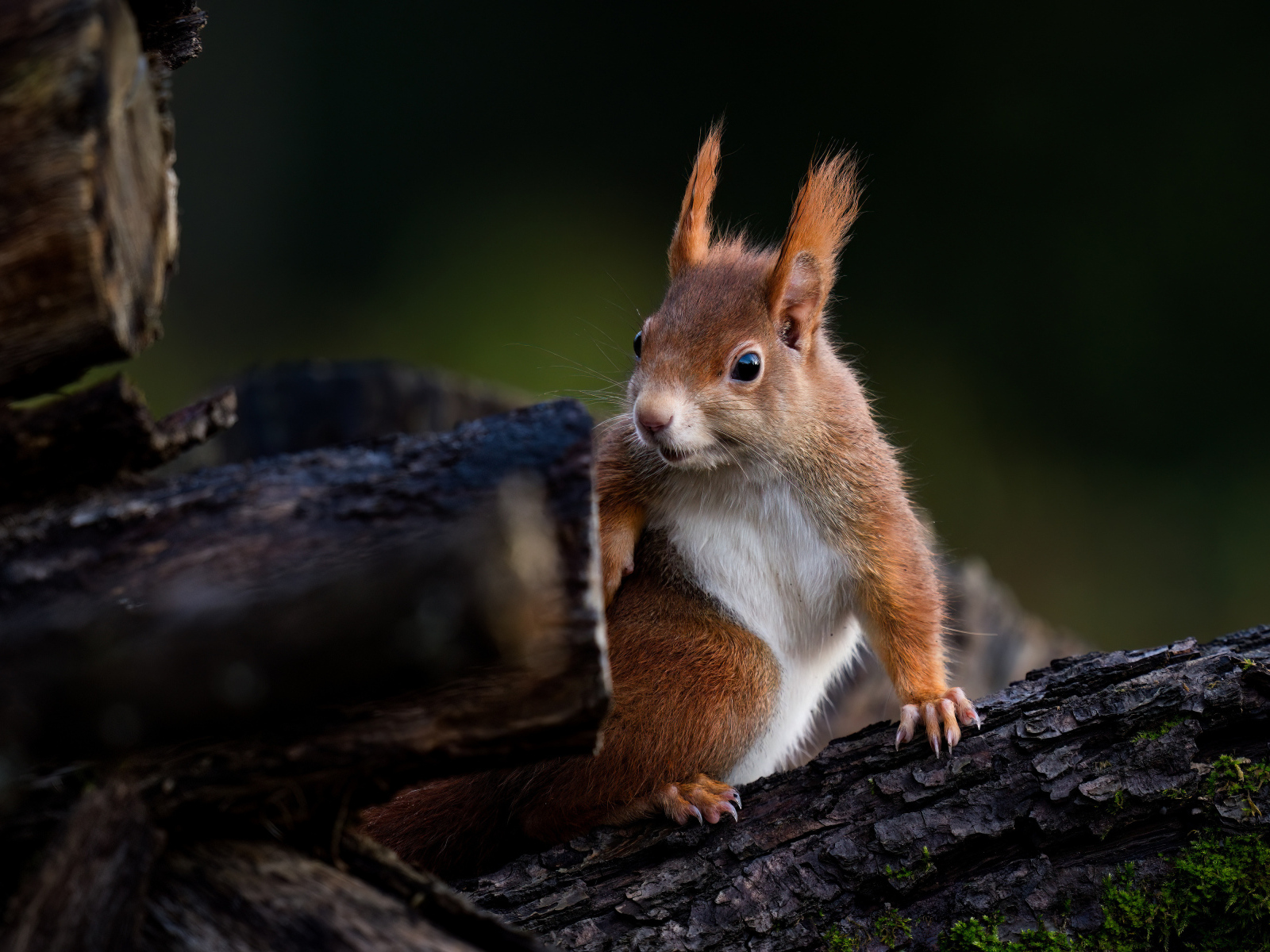 Удивленная белка сидит на дереве Обои для рабочего стола 1600x1200