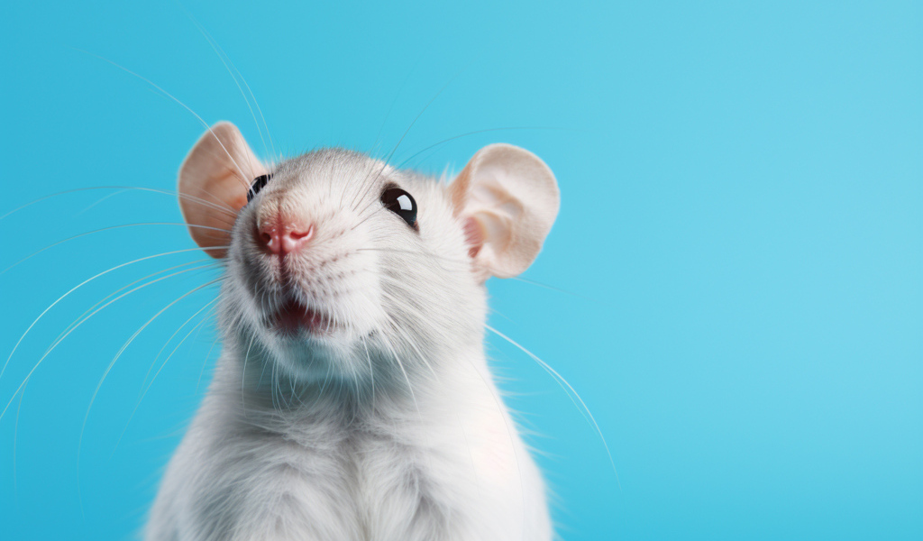 Милая серая крыса на голубом фоне Обои для рабочего стола 1024x600