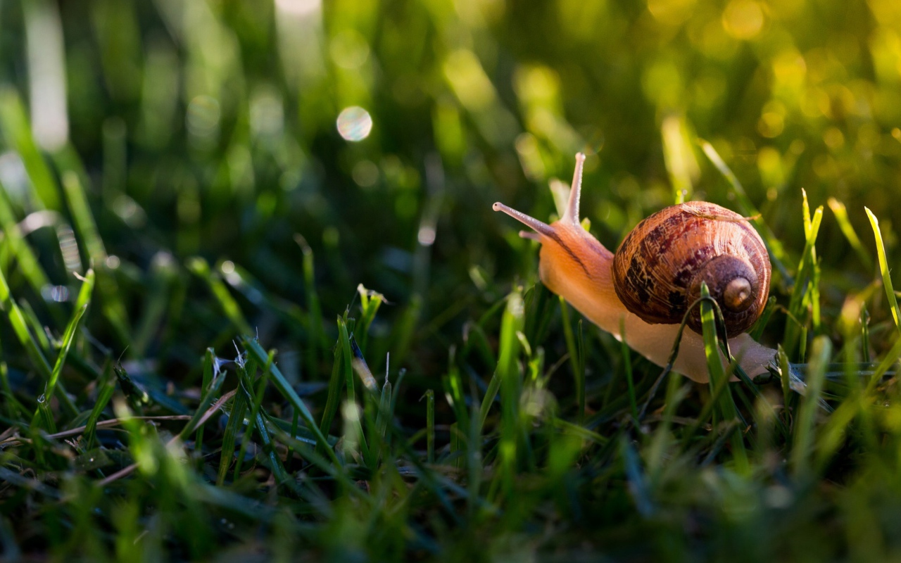 Большая улитка в зеленой траве Обои для рабочего стола 1280x800