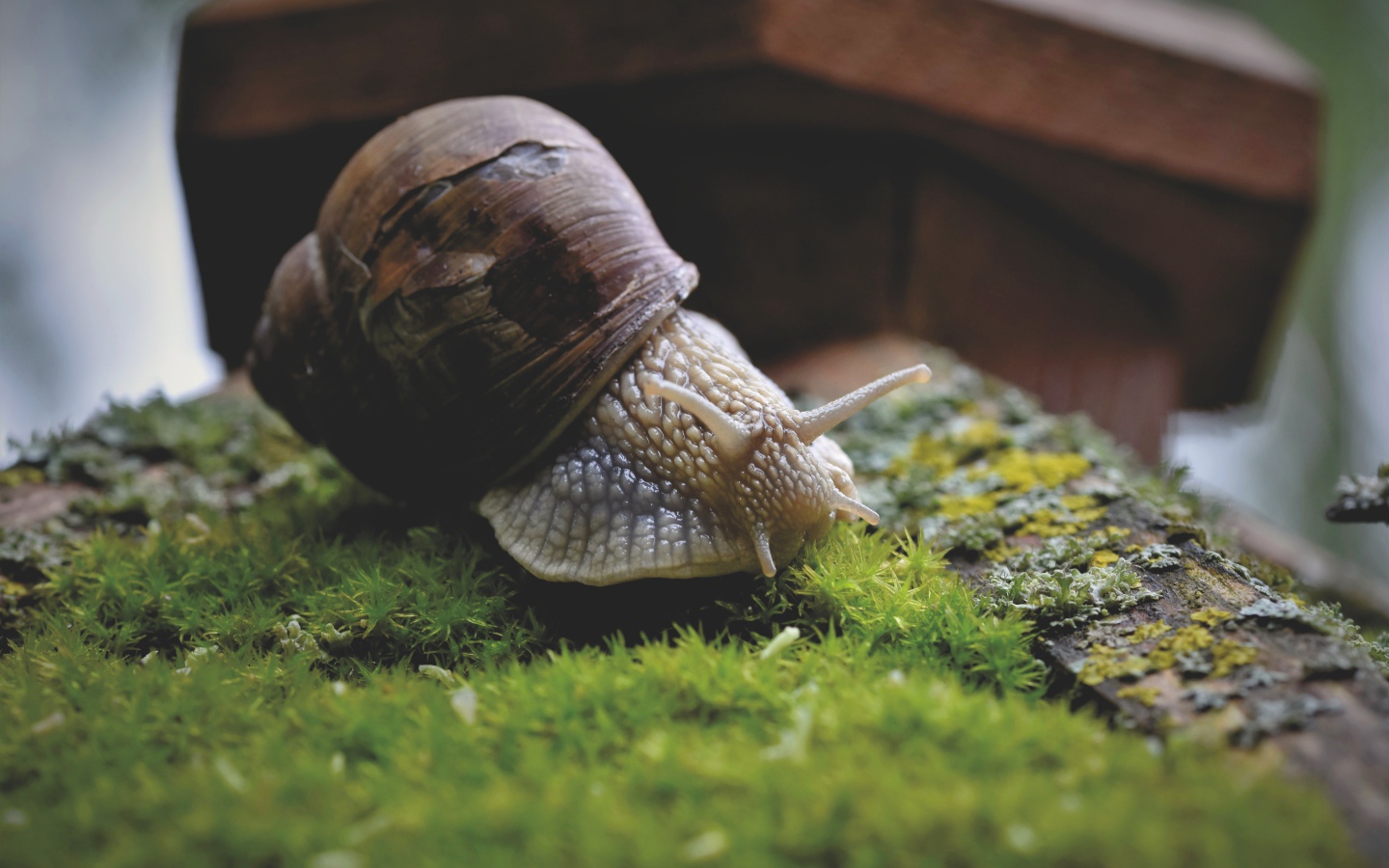 Большая улитка на покрытом мхом камне Обои для рабочего стола 1440x900
