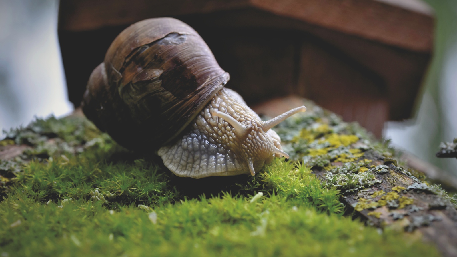 Большая улитка на покрытом мхом камне Обои для рабочего стола 1600x900