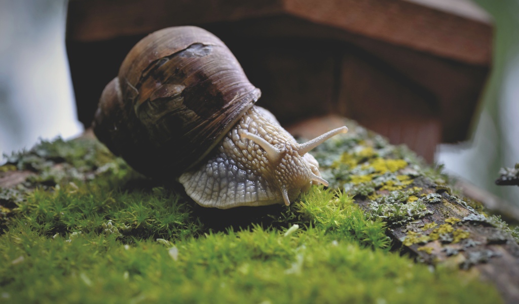 Большая улитка на покрытом мхом камне Обои для рабочего стола 1024x600