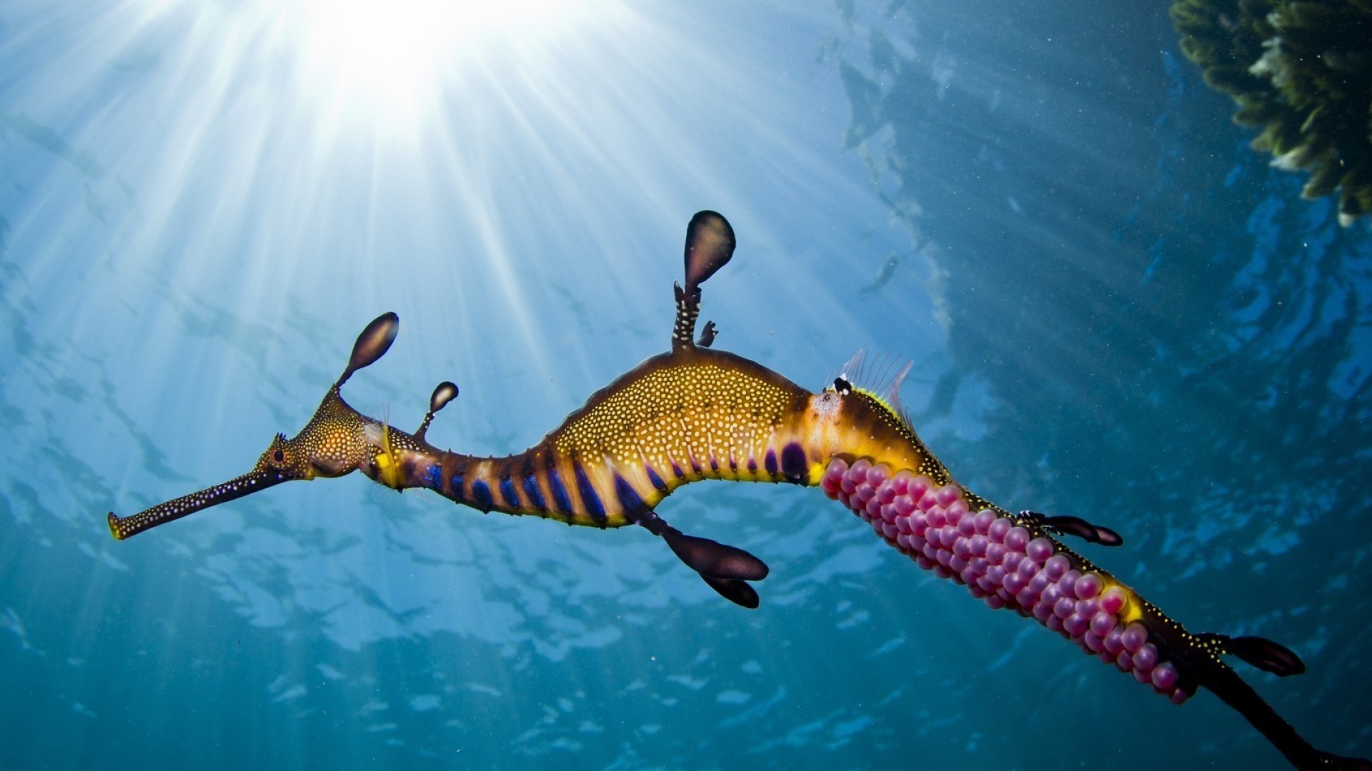 Морской конек в солнечных лучах - 1920x1080