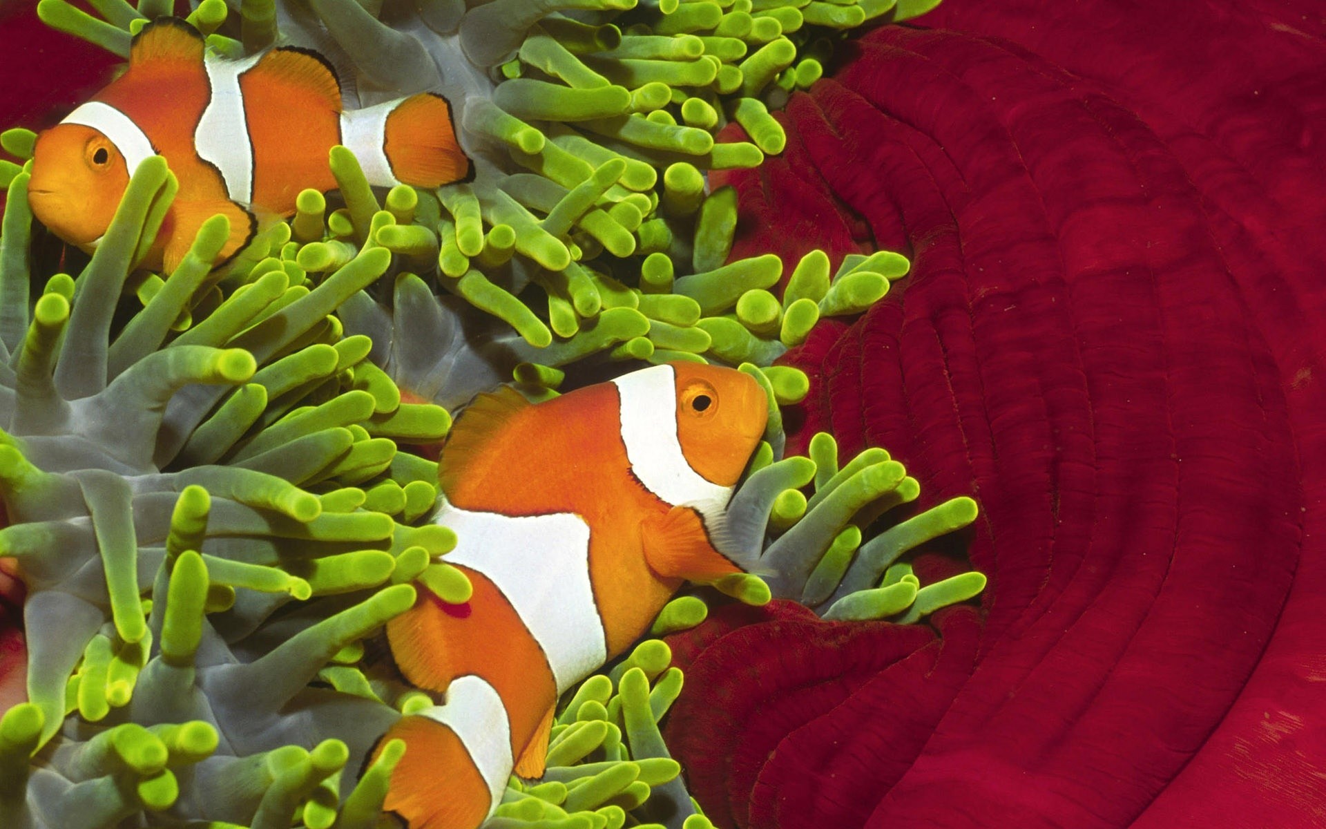 Рыбы среди зеленых анемон - 1920x1200