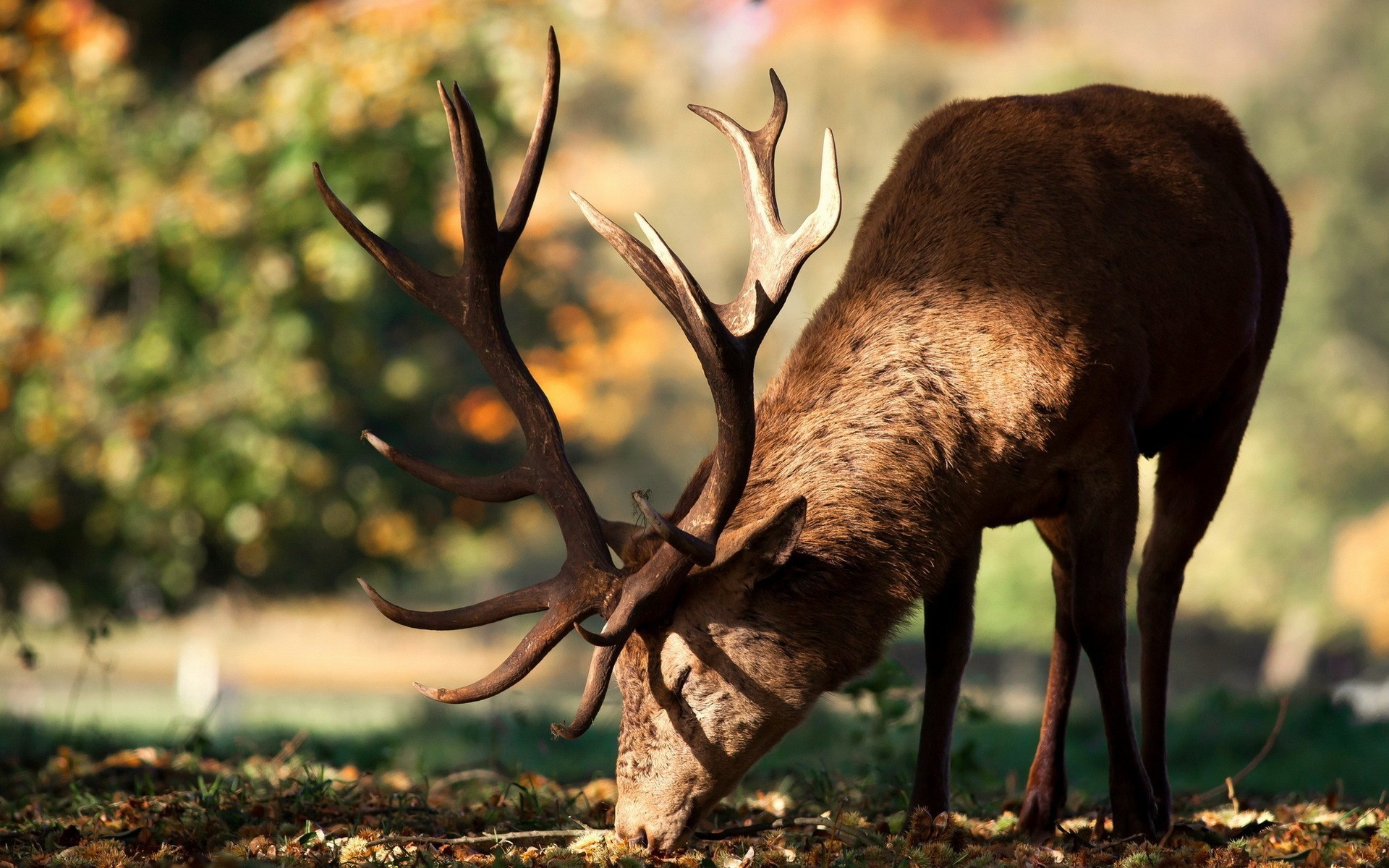 Олень кушает траву - 1920x1200