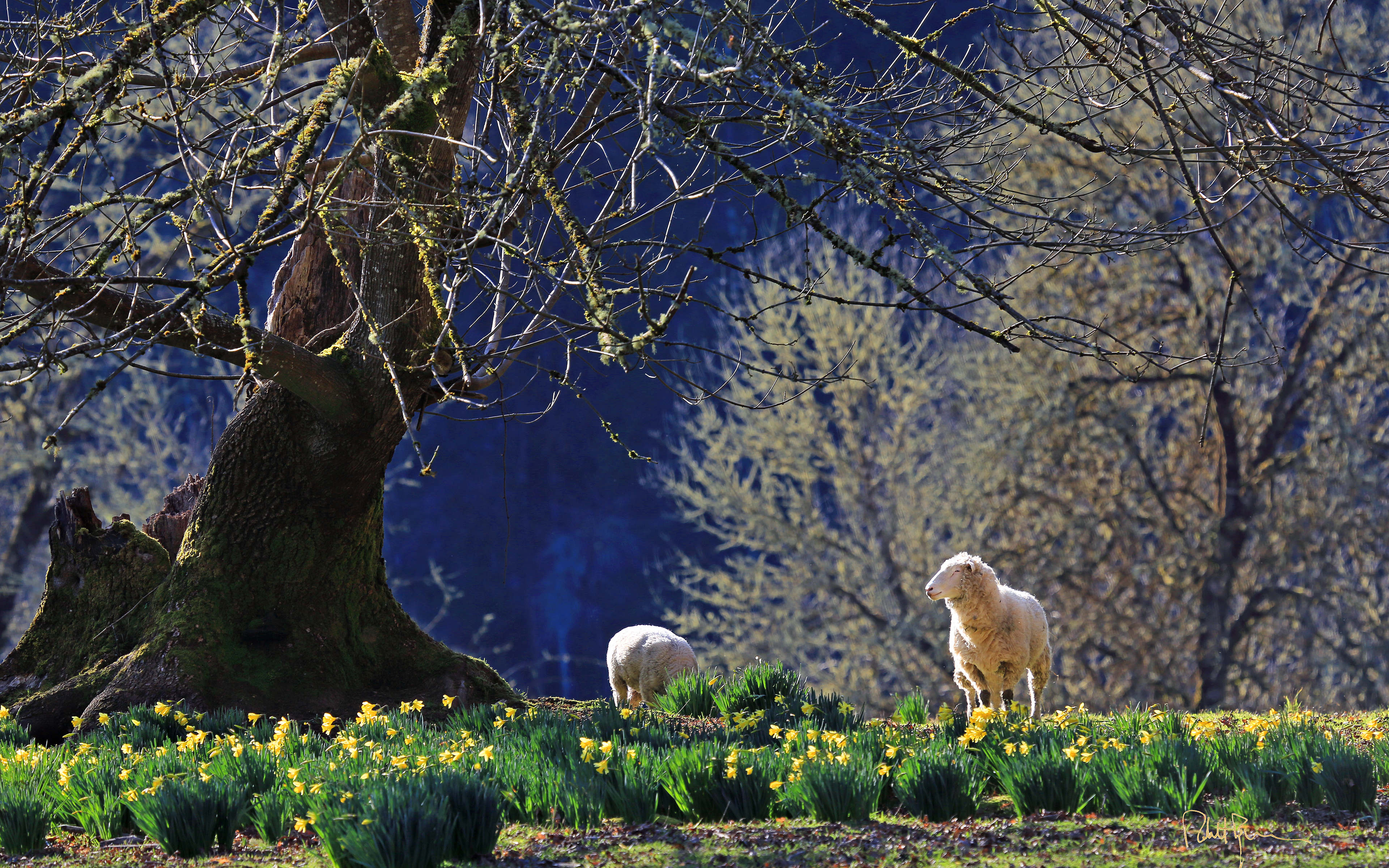 Нарциссы и ягнята - 3840x2400