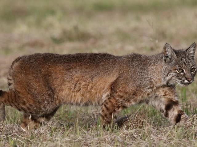 Обои: Дикая кошка идет по траве