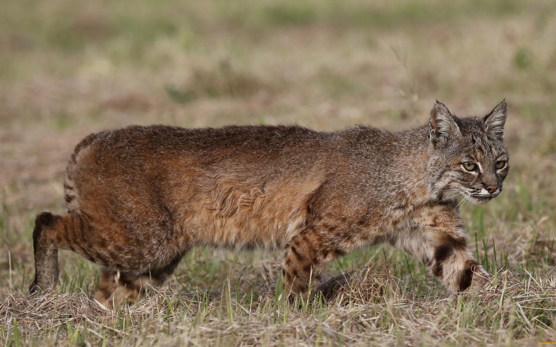 Дикая кошка идет по траве - 1920x1200