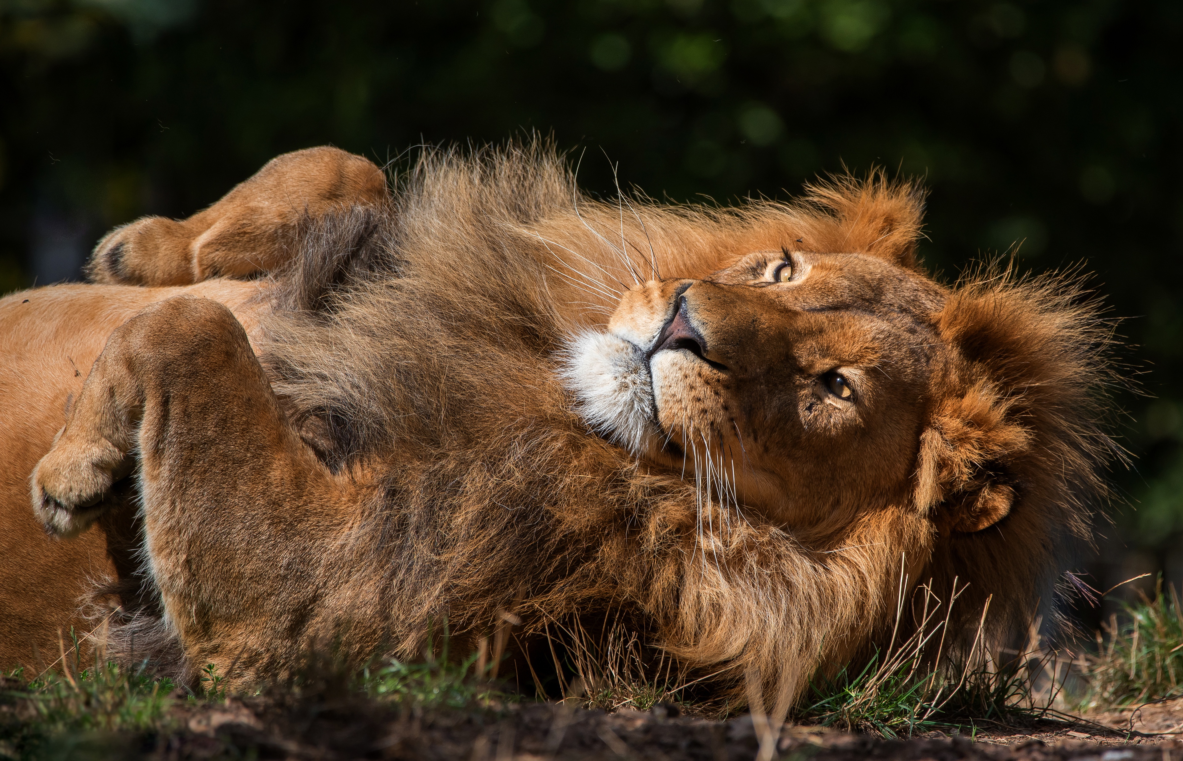 Большой лев лежит на земле - 3840x2472