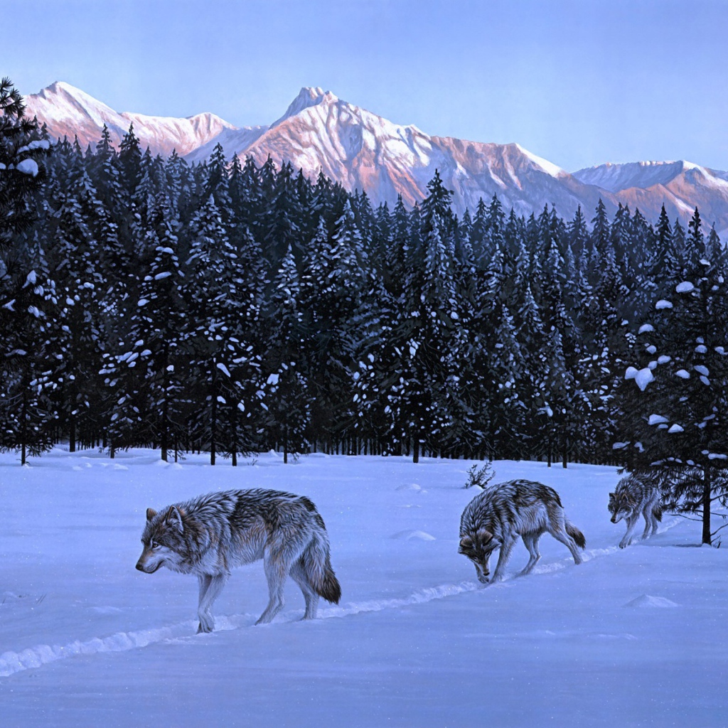 Три волка вышли на охоту Обои для рабочего стола 1024x1024