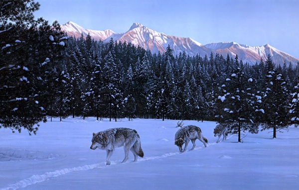 Три волка вышли на охоту Обои для рабочего стола 600x382