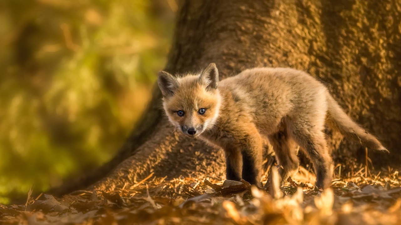 Маленький лисенок на желтой листве Обои для рабочего стола 1280x720