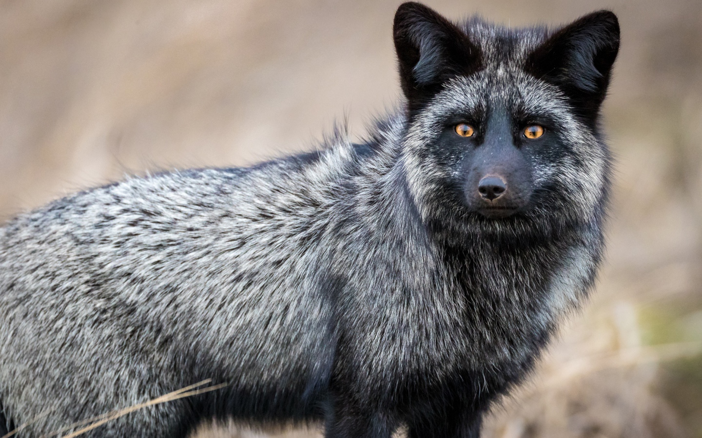 Красивая лиса чернобурка с желтыми глазами - 2400x1600