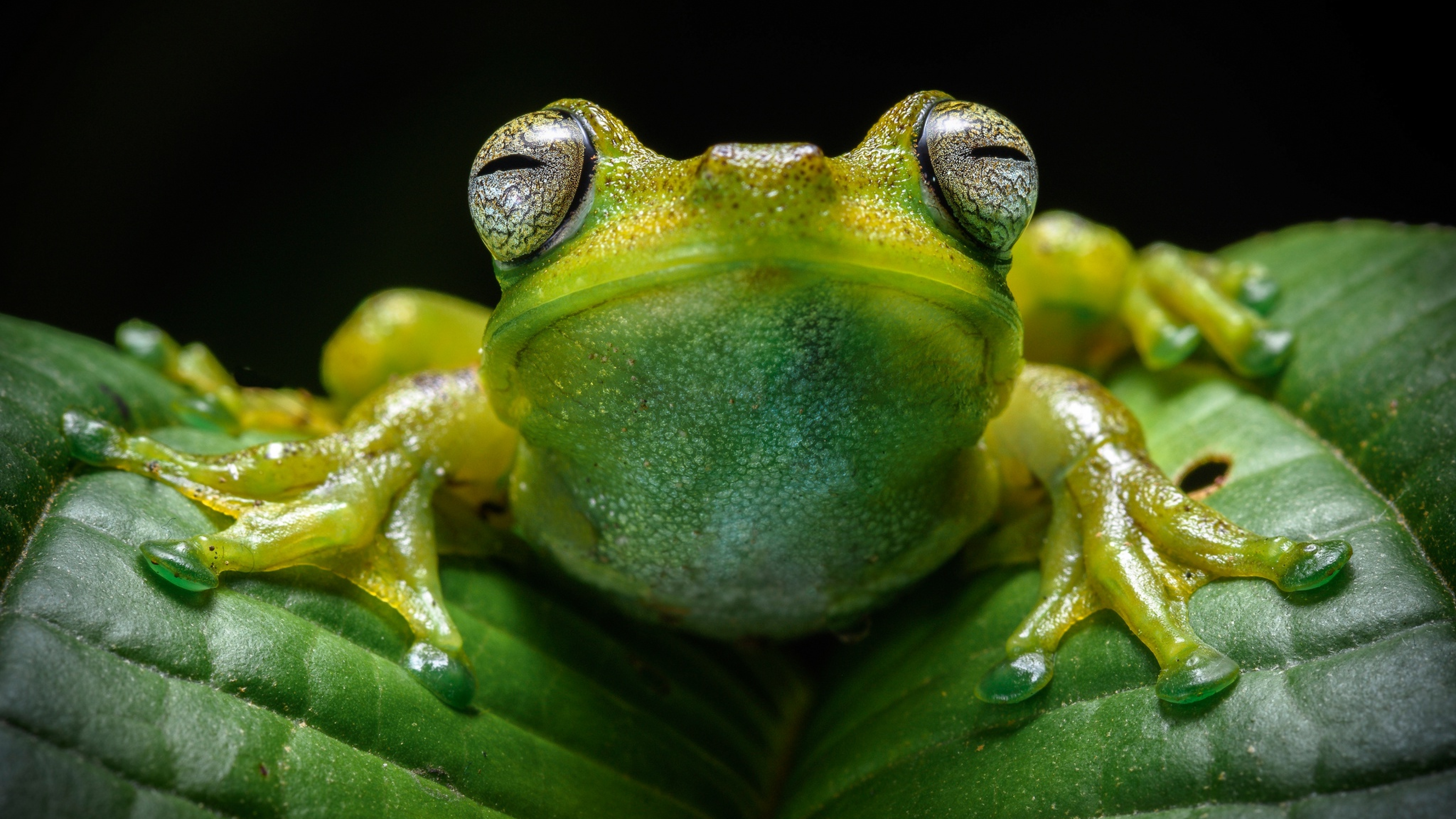 Лягушка на зеленом листе крупным планом - 3840x2160