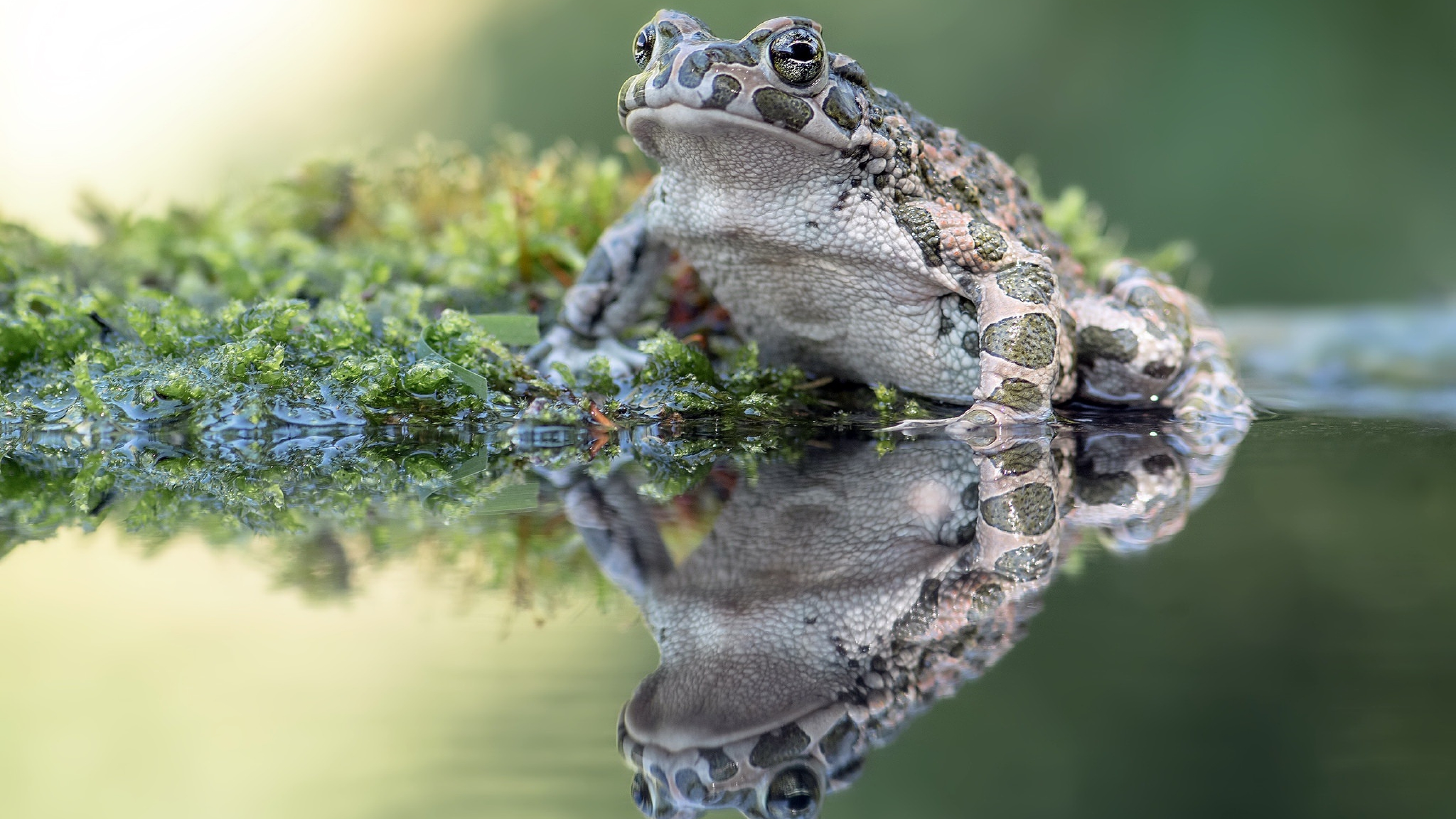 Большая лягушка сидит на водорослях в пруду - 3840x2160