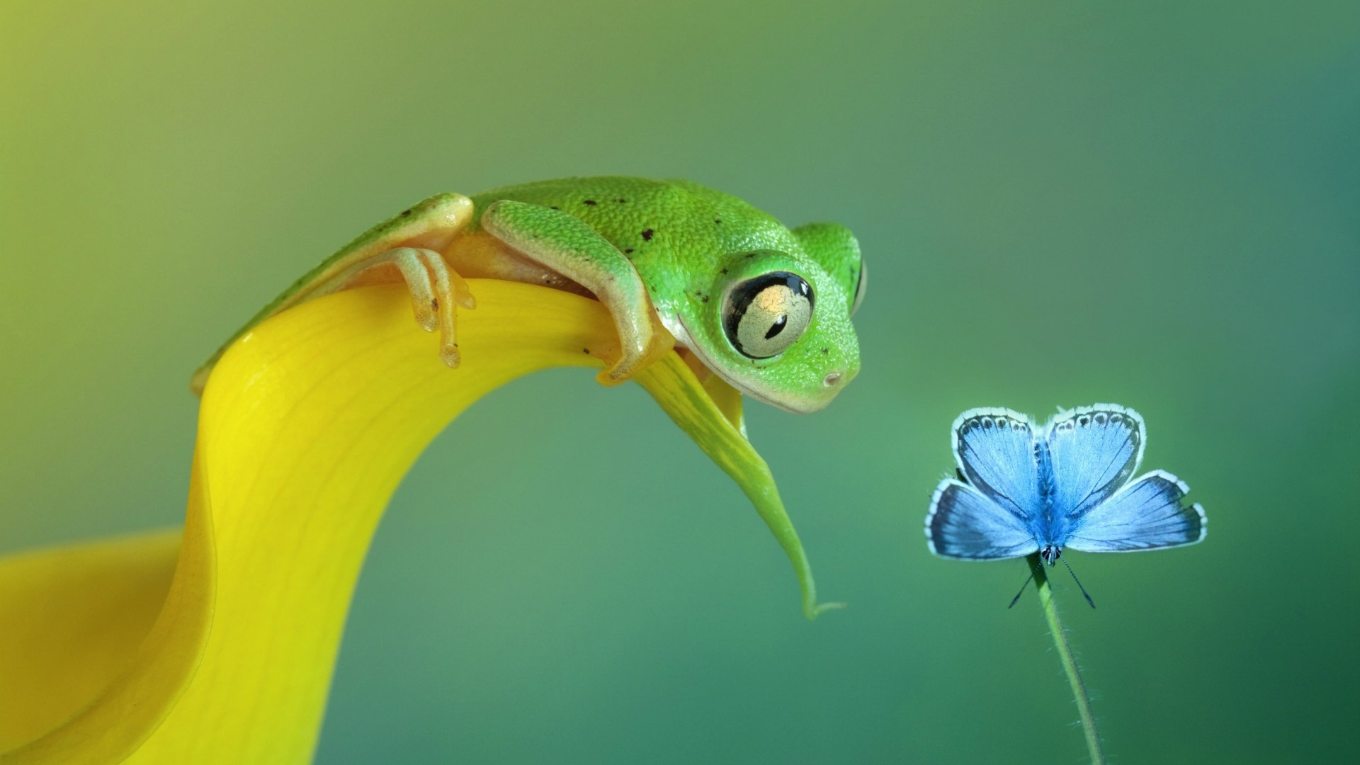 Лягушка смотрит на бабочку - 1920x1080